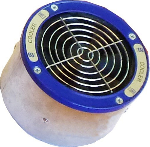 В условиях жаркого климата, при высоких температурах окружающего воздуха, такое охлаждение моноблока может оказаться недостаточным, поэтому мы рекомендуем для усиления охлаждения моноблока надеть предварительно на цилиндрическую поверхность моноблока с его переднего конца "рукав" из пористой ткани, а затем навинтить вентилятор. Если этот рукав за счет периодического смачивания его обычной водой, будет обдуваться потоком воздуха от вентилятора, то вода интенсивно испаряясь с горячей поверхности моноблока будет уносить с собою много тепла, образующегося в моноблоке в процессе его работы. Воду можно добавлять по мере необходимости в промежутках между экспозициями. Такая система охлаждения оказалась весьма эффективной в условиях климата Алжира.Расход воды составлял не более 1 стакана в день.